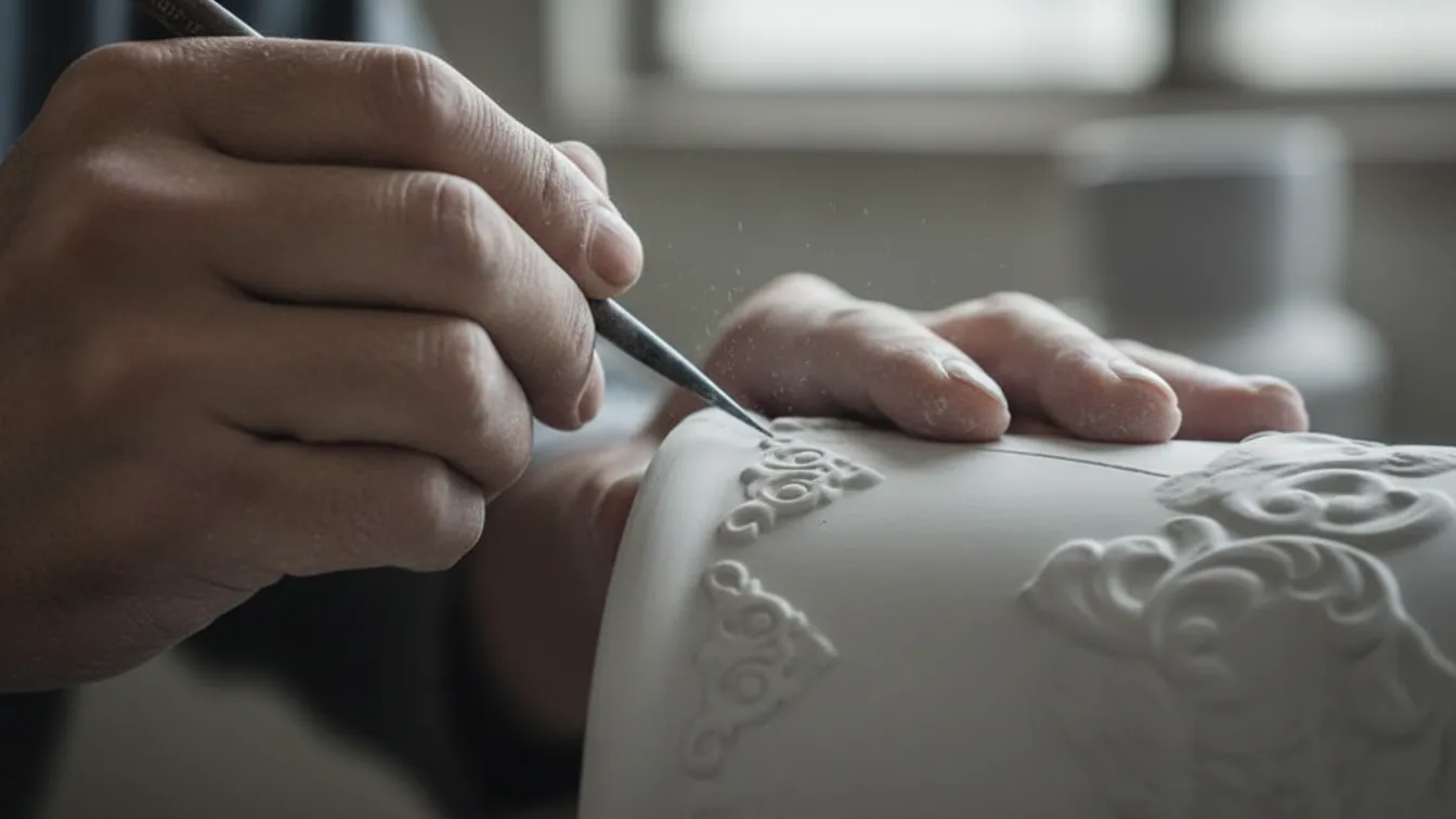 Skilled artisans carve patterns directly into the ceramic body, creating dimensional textures that add depth, character, and a distinct handcrafted feel.