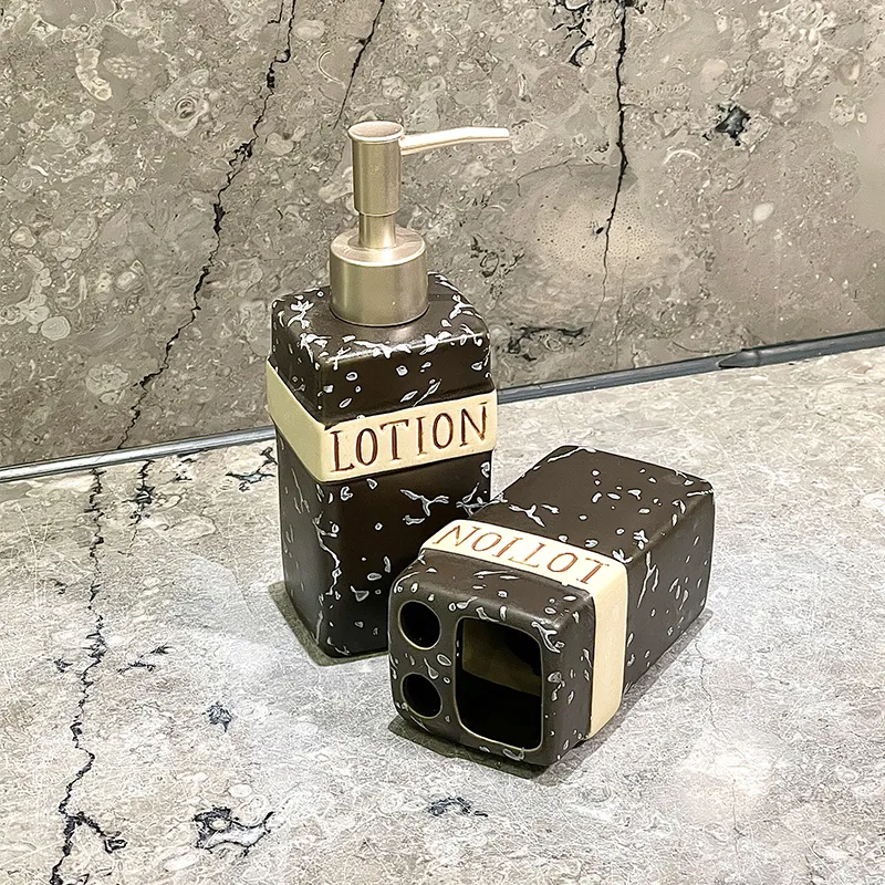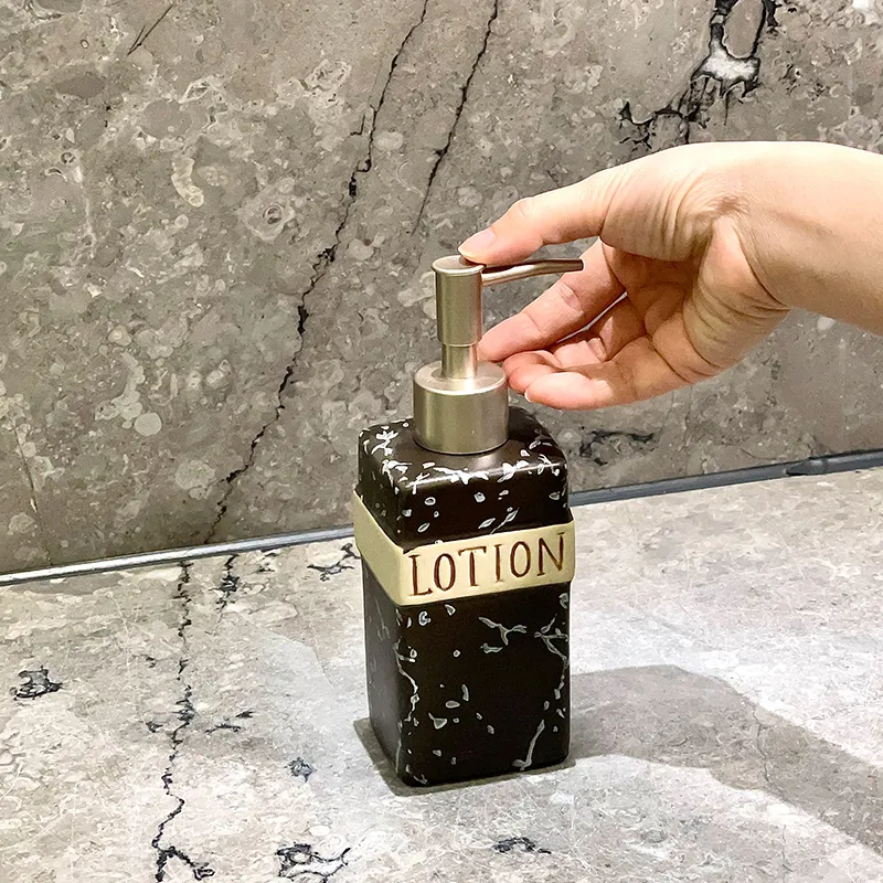 - Design noir et or à effet marbré: Wholesale Black Soap Dispenser Ceramics features a marble-inspired black and gold finish, creating a luxury bathroom look.
