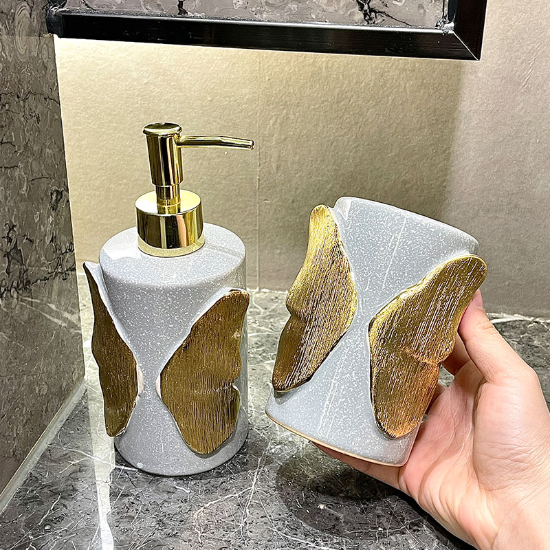 - Four-Piece Hotel Set: The items contained in this set are a soap dispenser, a toothbrush holder, a rinsing cup, and a soap dish. In essence, it supplies the fundamental requirements for a hotel room’s bathrooms.