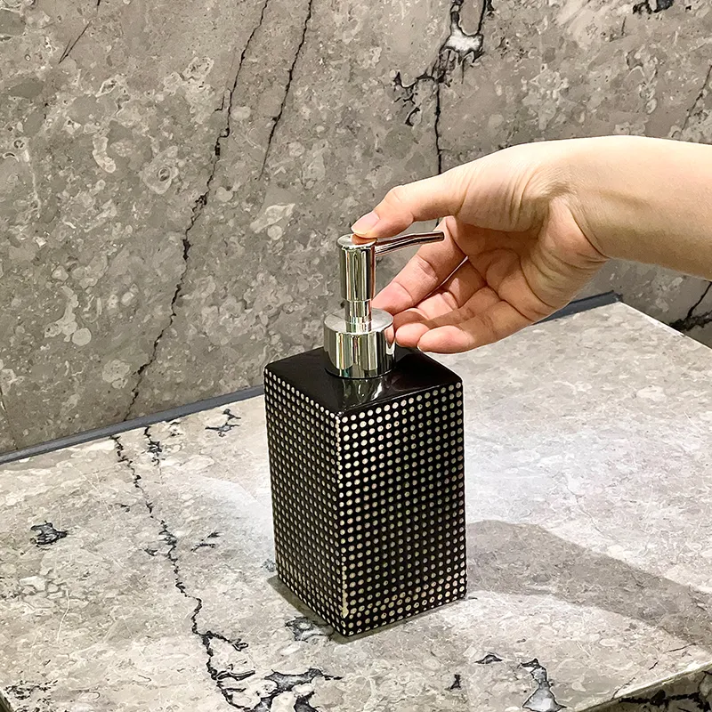 - Dot-textured Ceramic Design: the wholesale bathroom set with a dot-textured ceramic decor features a delicate dot pattern design and provides a rich but delicate tactile feeling. Effective in enhancing thesense of depth and sophistication of bathroom space, it should be highly fitted for hotel and high-end projects.