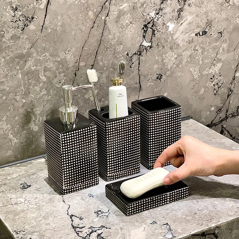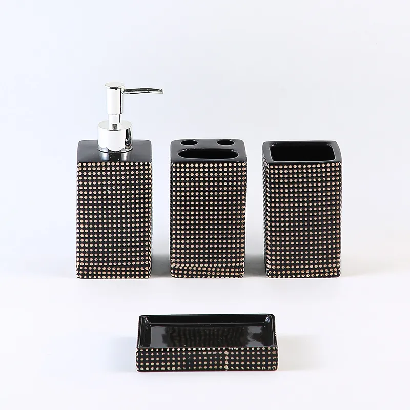 Dot-Textured Ceramic Wholesale Bathroom Set Hotel Bath Accessories Manufacturer