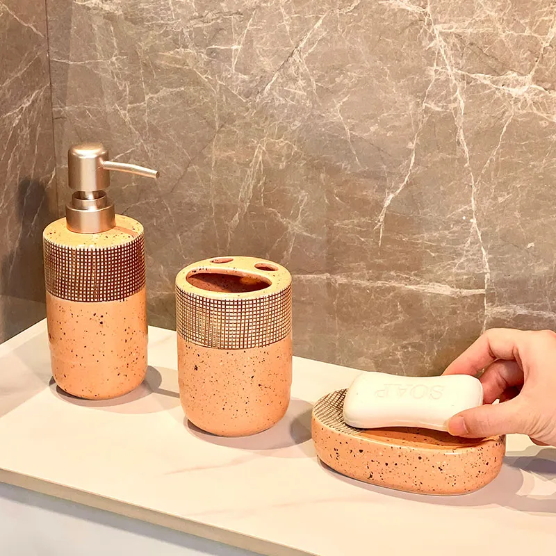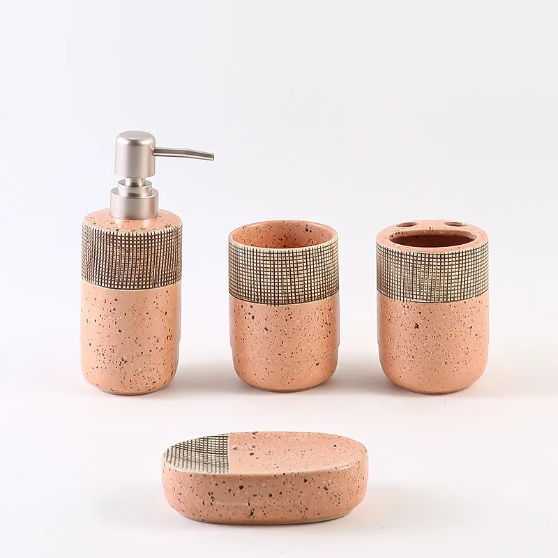 Custom 4pcs Ceramic Bathroom Set, Hand-Made Bath Accessories Set Manufacturer