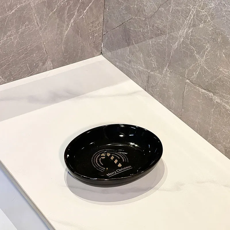 - Eye-Catching Festive Design: Custom Glossy Soap Dish Ceramics feature a glossy black glaze combined with Christmas elements, enhancing holiday ambiance and making them ideal for seasonal décor and gift markets.