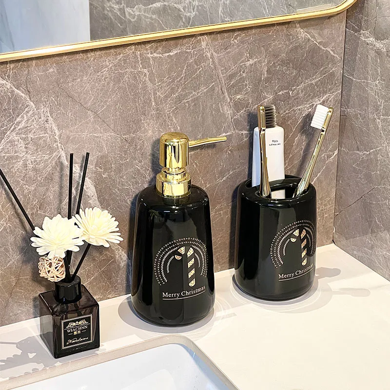 - Eye-Catching Festive Colors: Custom glossy soap dispenser ceramics feature a glossy black and green glaze with an elegant gold pump, creating a strong Christmas atmosphere and enhancing countertop display appeal.