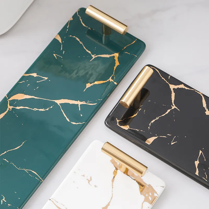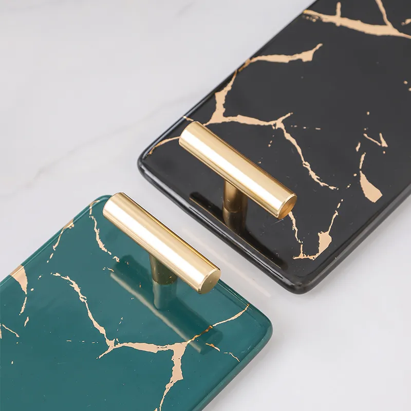 Bulk Custom Soap Dispenser Bottle Set – Green Gold Marble Vein Ceramic Tray Set for Bathroom