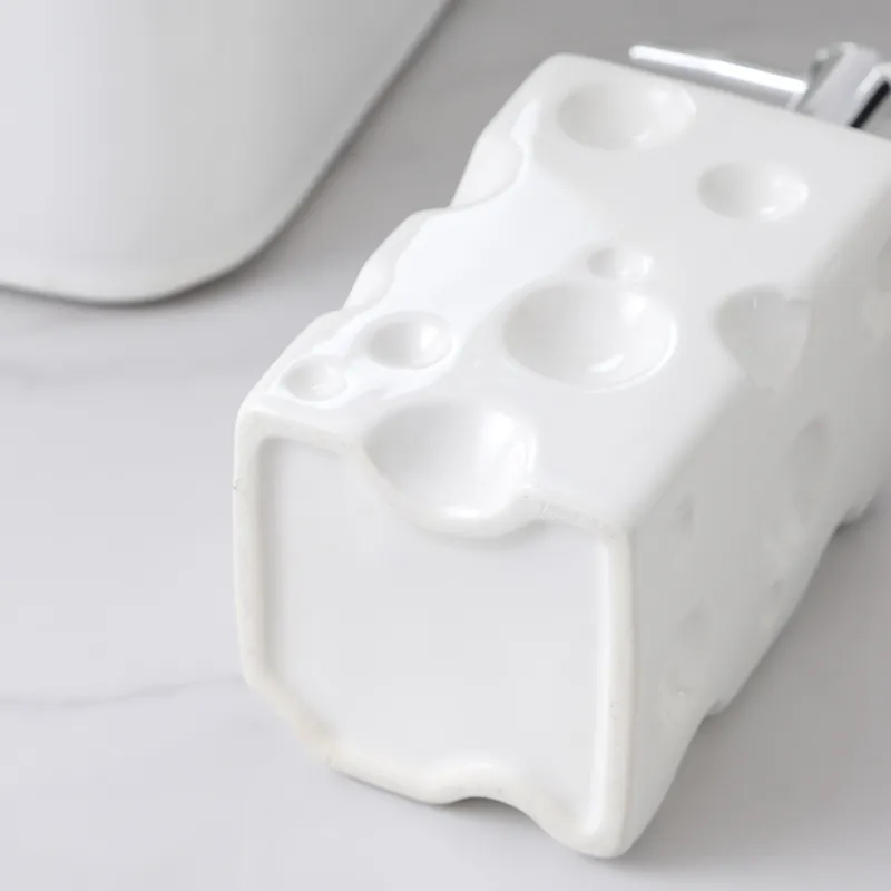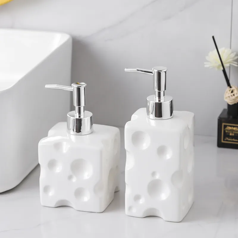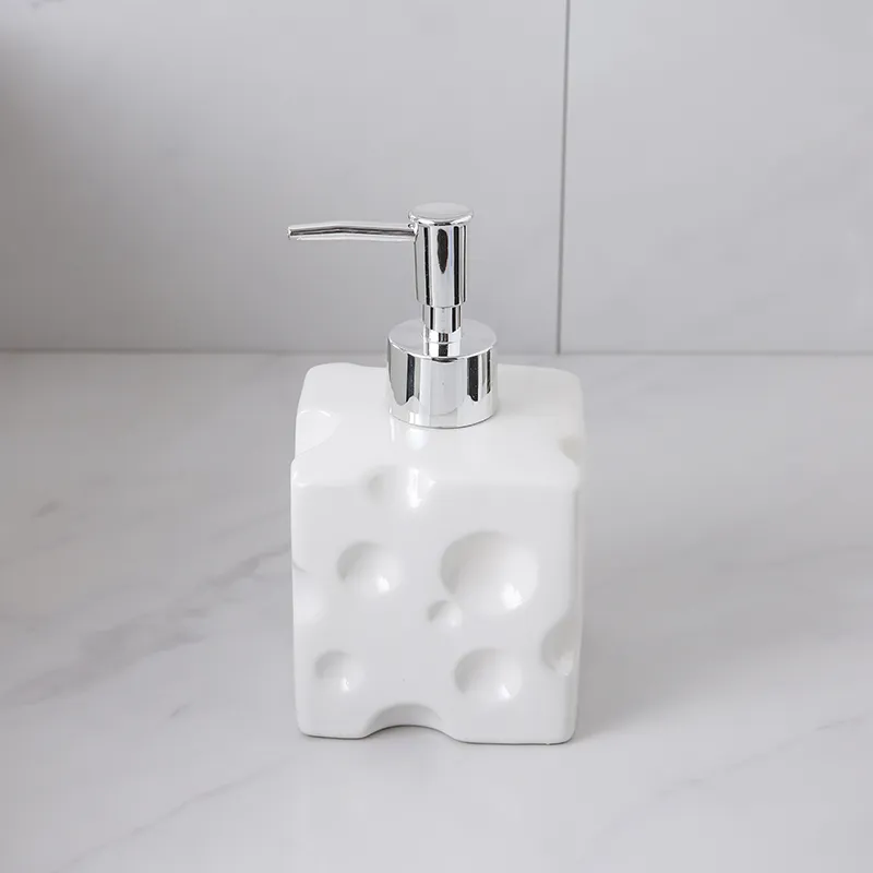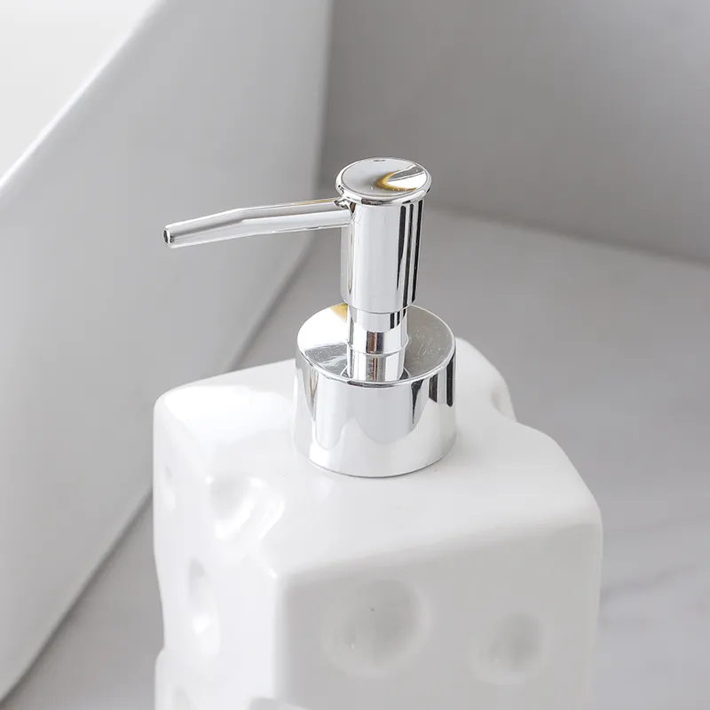 - Cheese Hole Texture Design: Solid Glaze Lotion Dispenser Bulk features a unique white cheese hole texture glaze, offering a simple yet stylish and fun look for modern bathrooms.
