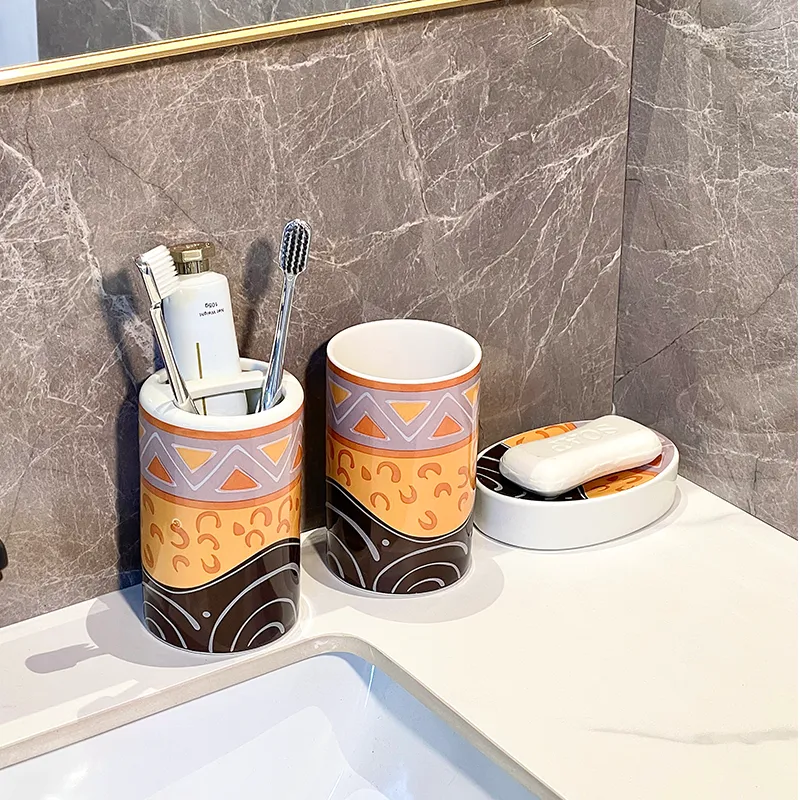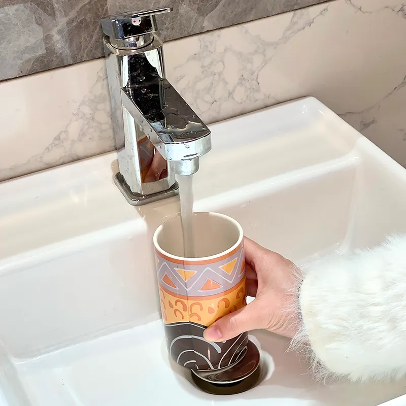 - Boho Tribal Pattern Design: The Vintage Ceramic Mouthwash Cup Wholesale features vibrant tribal patterns that add personality and visual appeal to bathroom spaces.
