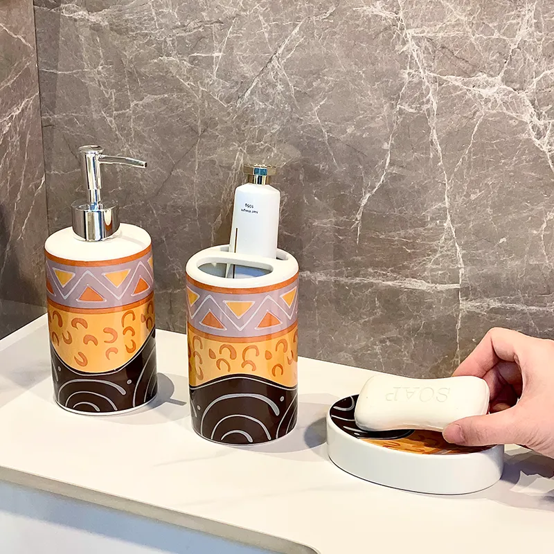 Vintage ceramic soap dish wholesale features a colorful boho tribal pattern, durable ceramic, and easy maintenance. Perfect for hotels, resorts, and bathroom sets. Factory direct wholesale pricing with free samples available.