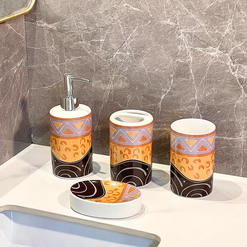 Vintage Ceramic Toothbrush Holder Bulk features a colorful boho tribal pattern, durable ceramic build, and easy maintenance. Perfect for hotels, resorts, and bathroom sets. Factory direct wholesale pricing with free samples available.