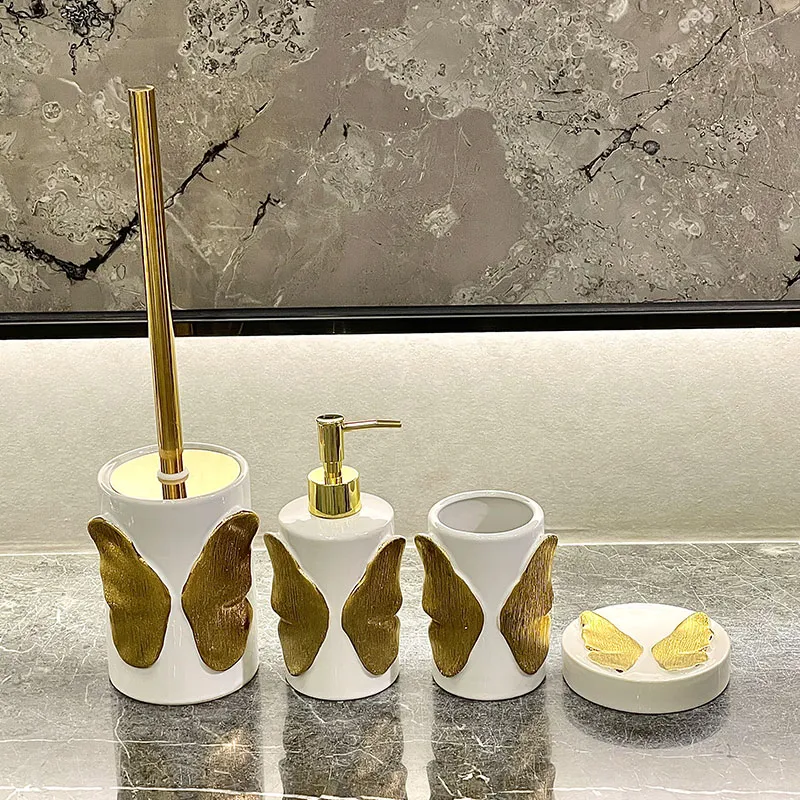 Wholesale Butterfly Bathroom Sets Accessories – 4-Piece White & Gold Ceramic Bath Decor Set