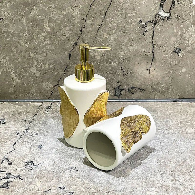 - Complete 4-Piece Ceramic Bathroom Set: Includes a soap dispenser, toothbrush holder, tumbler, and soap dish, providing a coordinated solution for everyday bathroom use and organization.