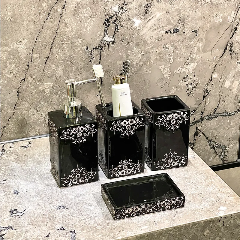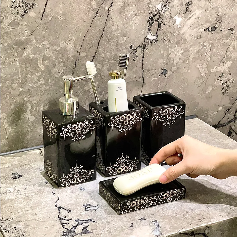 Conjunto de Acessórios de Casa de Banho de Luxo Personalizados, Kit de Banho de 4 Peças em Cerâmica Atacado